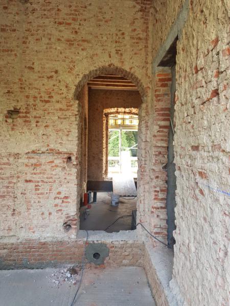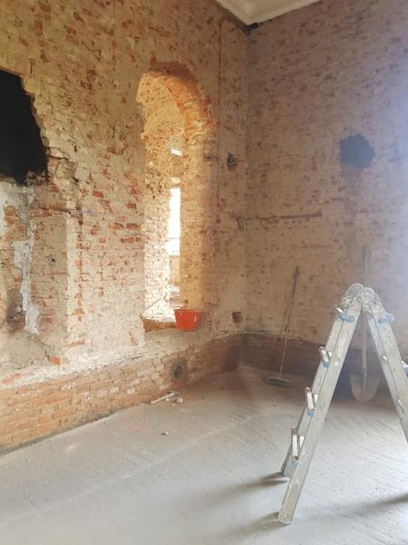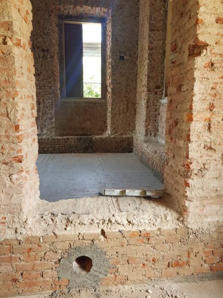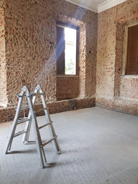 La prima fase ha previsto il consolidamento delle strutture e il recupero degli elementi architettonici originali, come cornici, infissi e decorazioni, per mantenere intatto il carattere distintivo della casa.