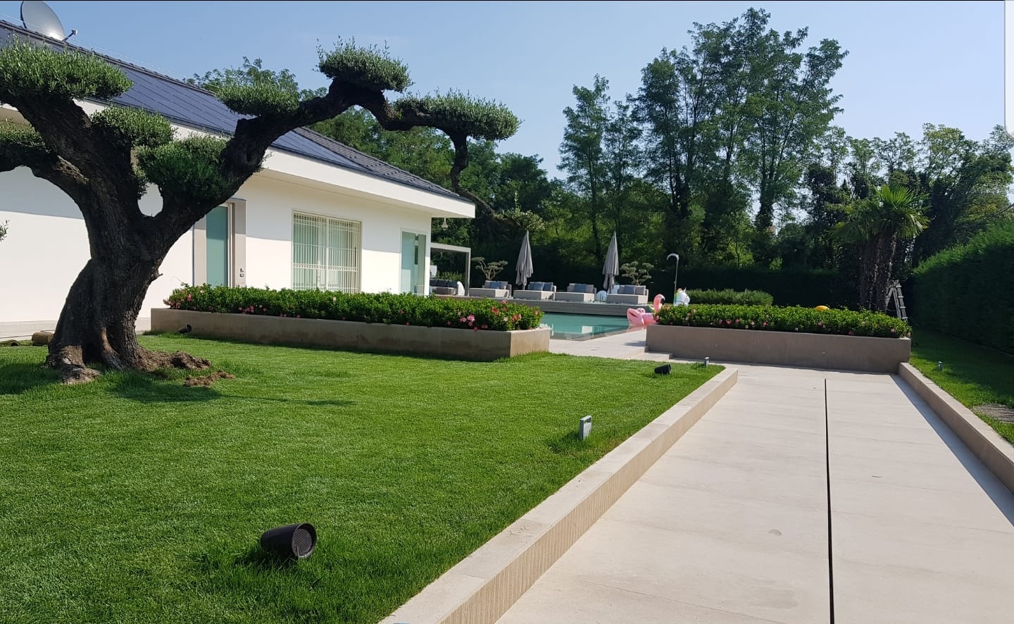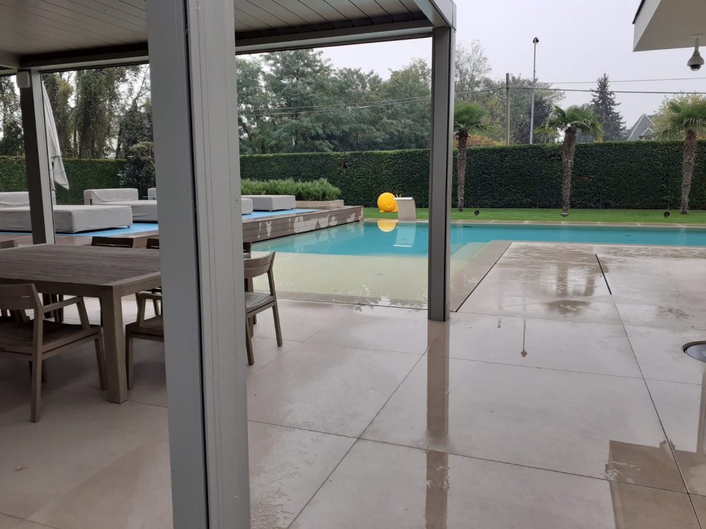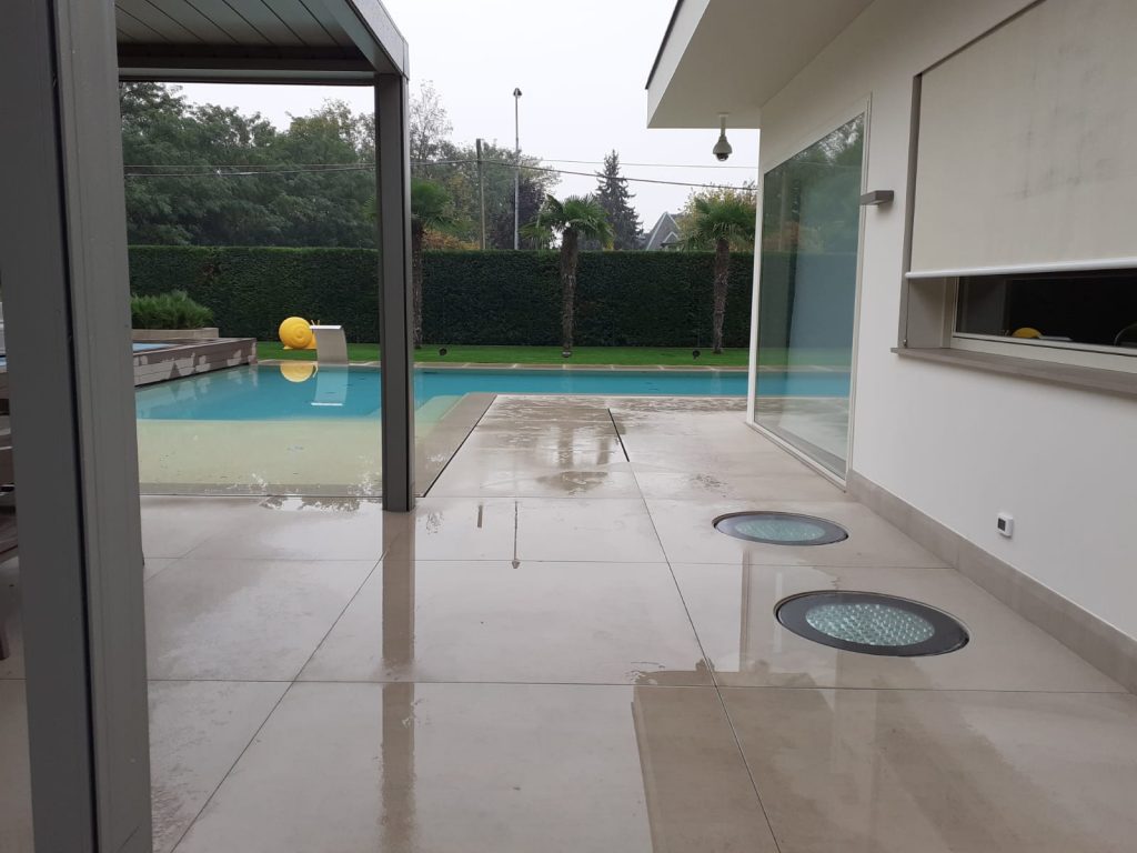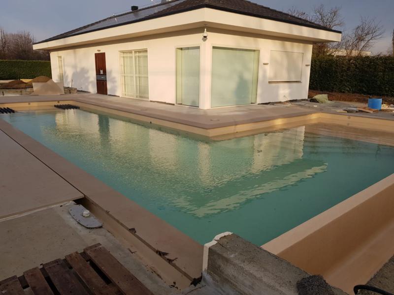 All’esterno è stata realizzata una nuova piscina con area solarium, progettata per integrarsi armoniosamente nel giardino esistente. L’utilizzo di materiali di alta qualità, finiture resistenti e soluzioni tecniche efficienti ha permesso di ottenere un risultato estetico elegante e durevole nel tempo.