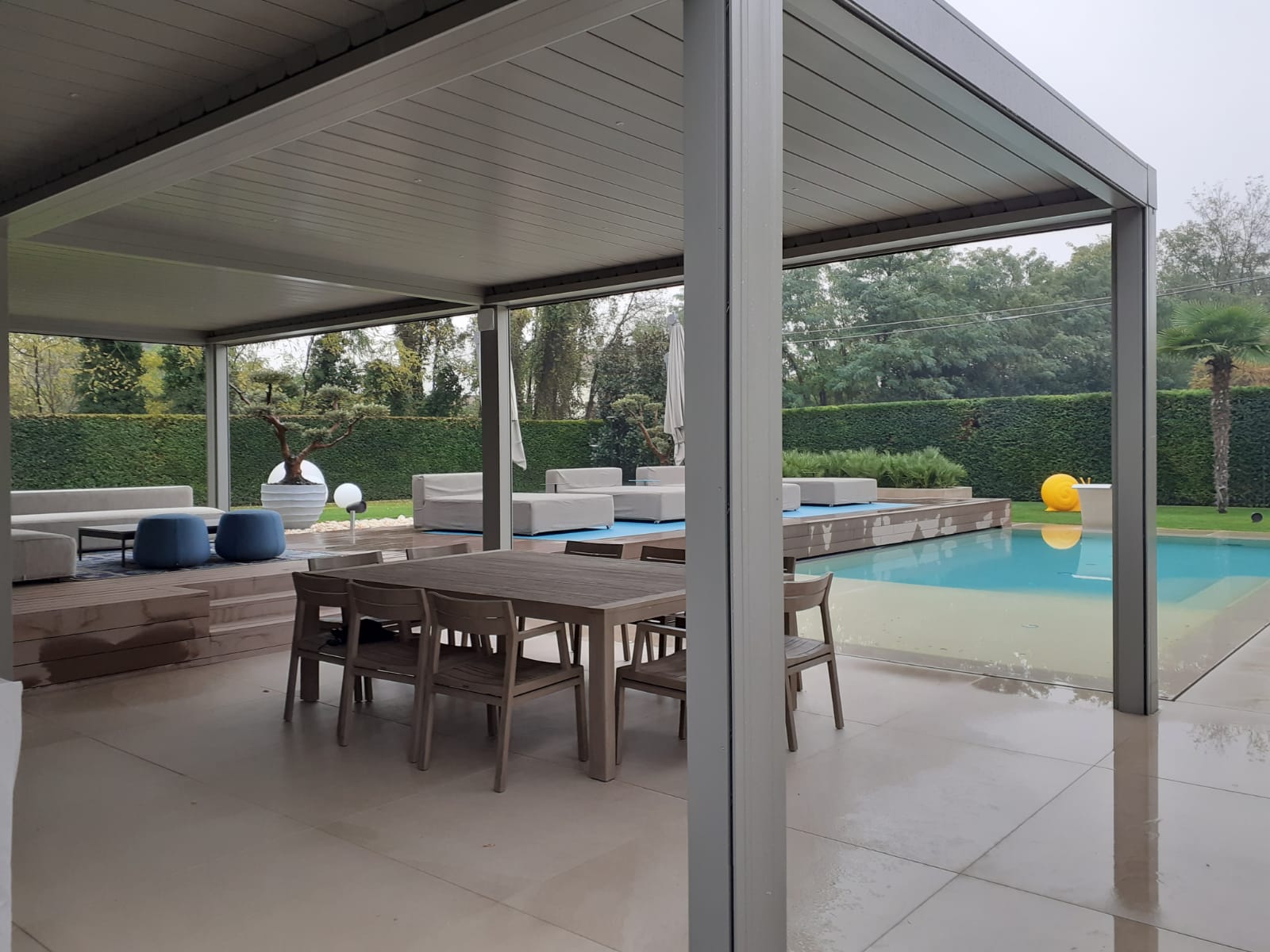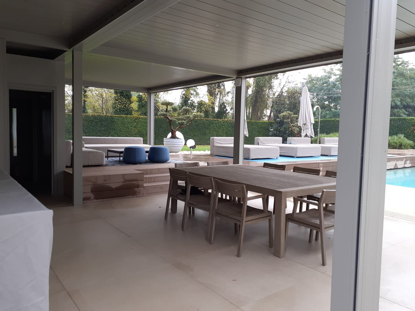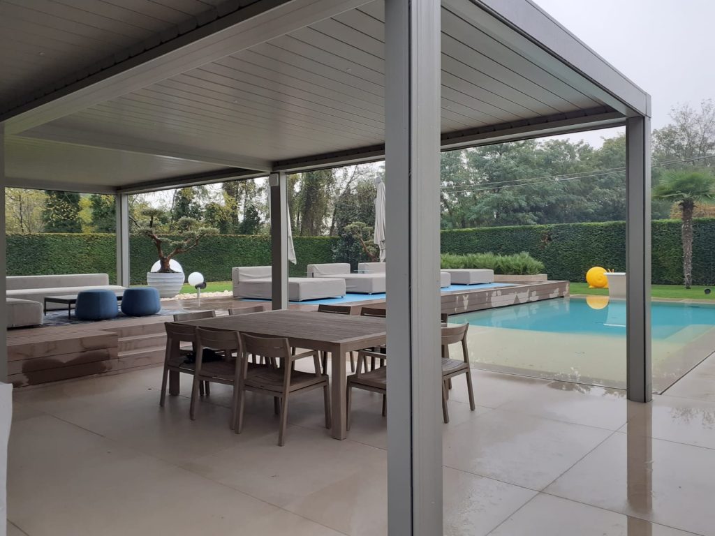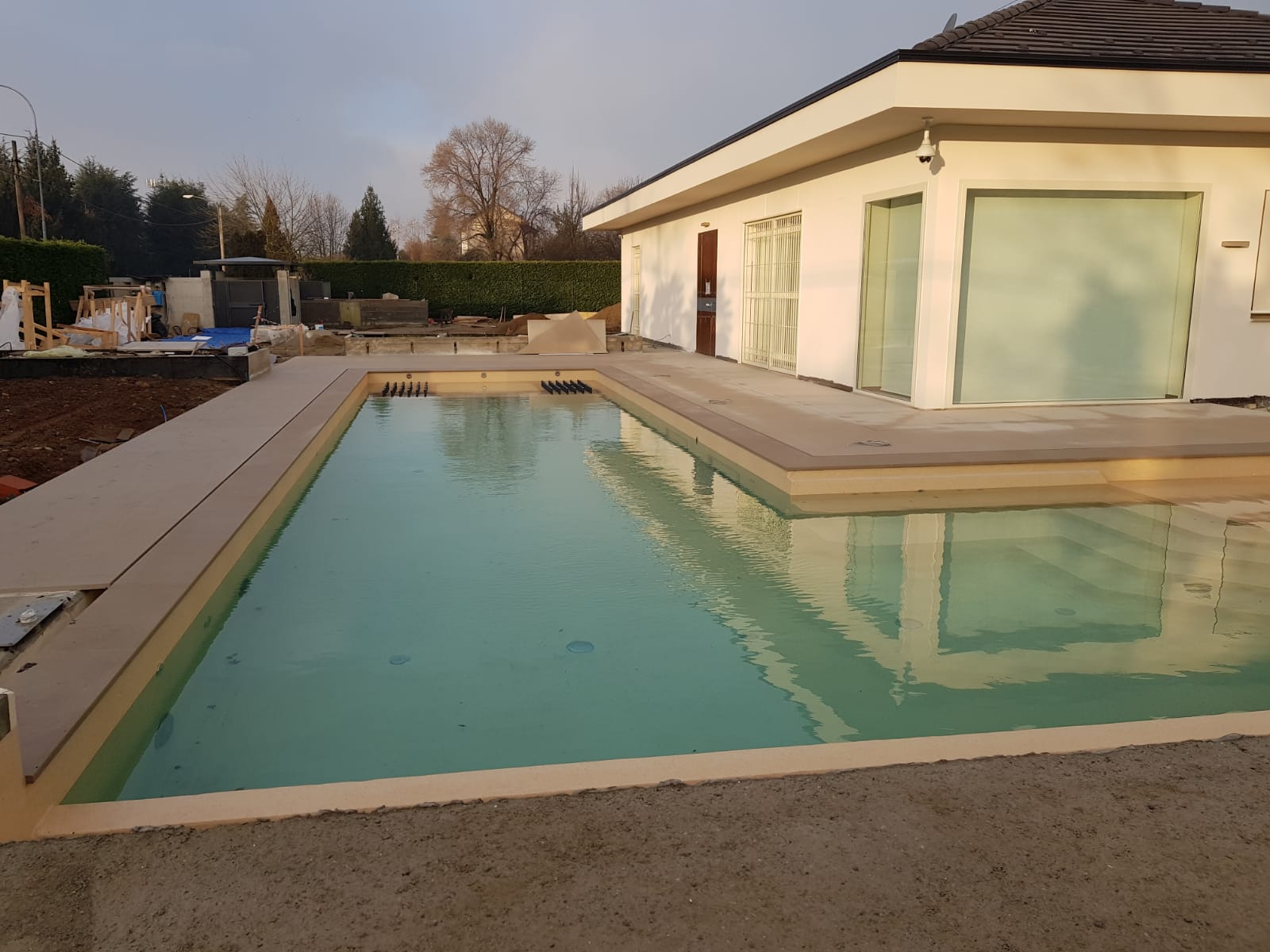 All’esterno è stata realizzata una nuova piscina con area solarium, progettata per integrarsi armoniosamente nel giardino esistente. L’utilizzo di materiali di alta qualità, finiture resistenti e soluzioni tecniche efficienti ha permesso di ottenere un risultato estetico elegante e durevole nel tempo.